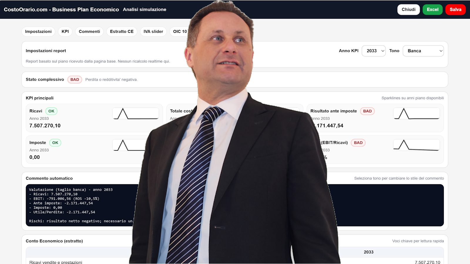 Quando il cliente vede che in pochi minuti puoi mostrargli come cambia il margine se modificano prezzi, costi, struttura, personale o investimenti, capisce che il tuo lavoro non è retrospettivo, ma strategico.