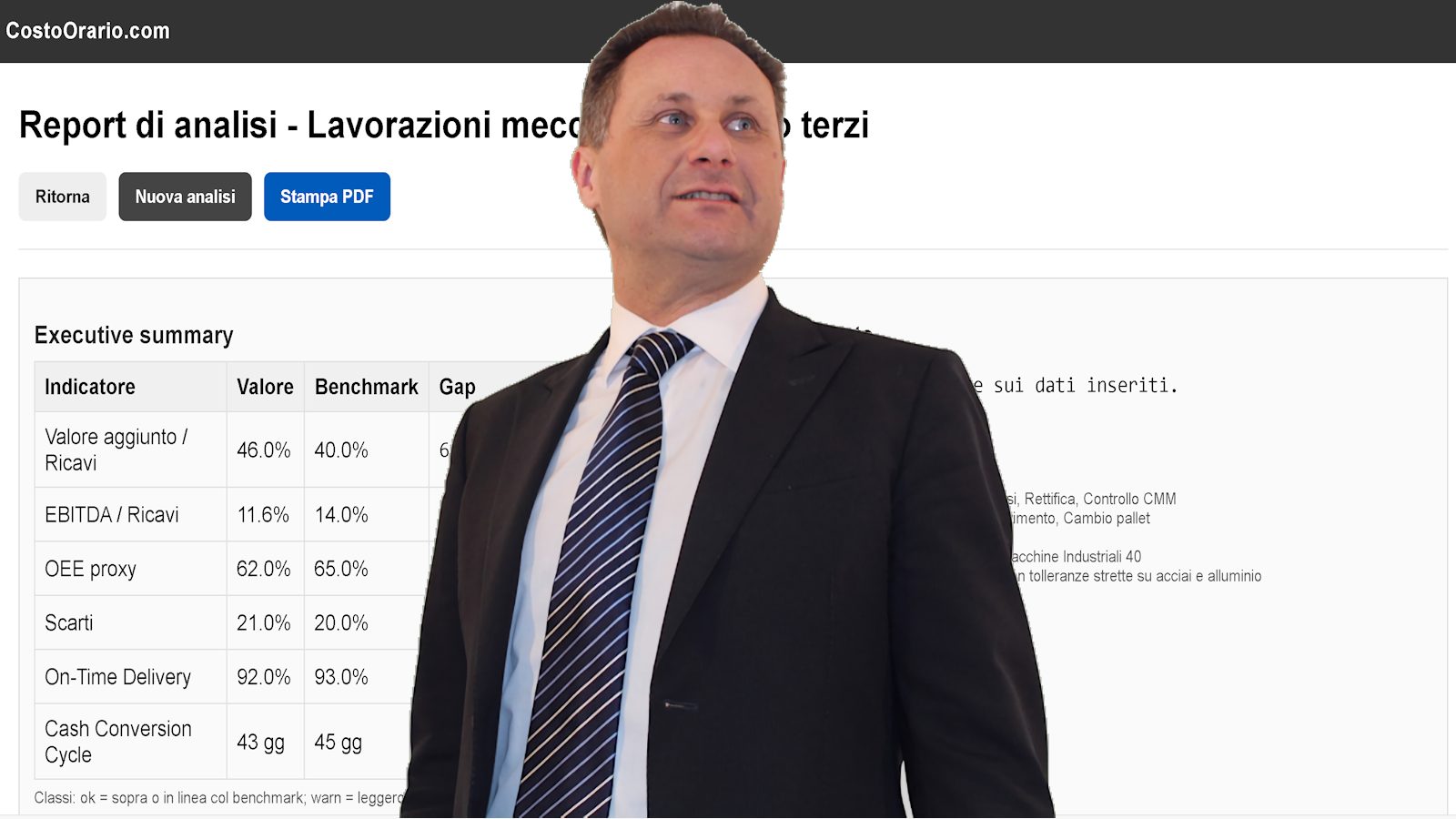 il suo OEE è al 58%, il CCC a 85 giorni, la marginalità sotto il benchmark del 10%.