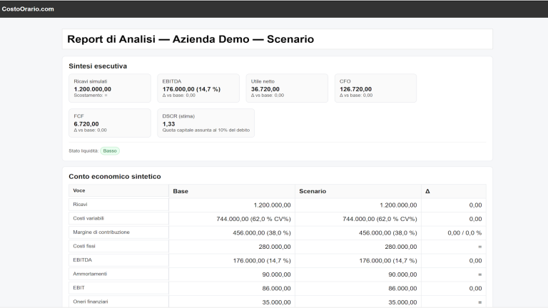 metriche di controllo chiare (MC%, DSCR, ΔCCN),