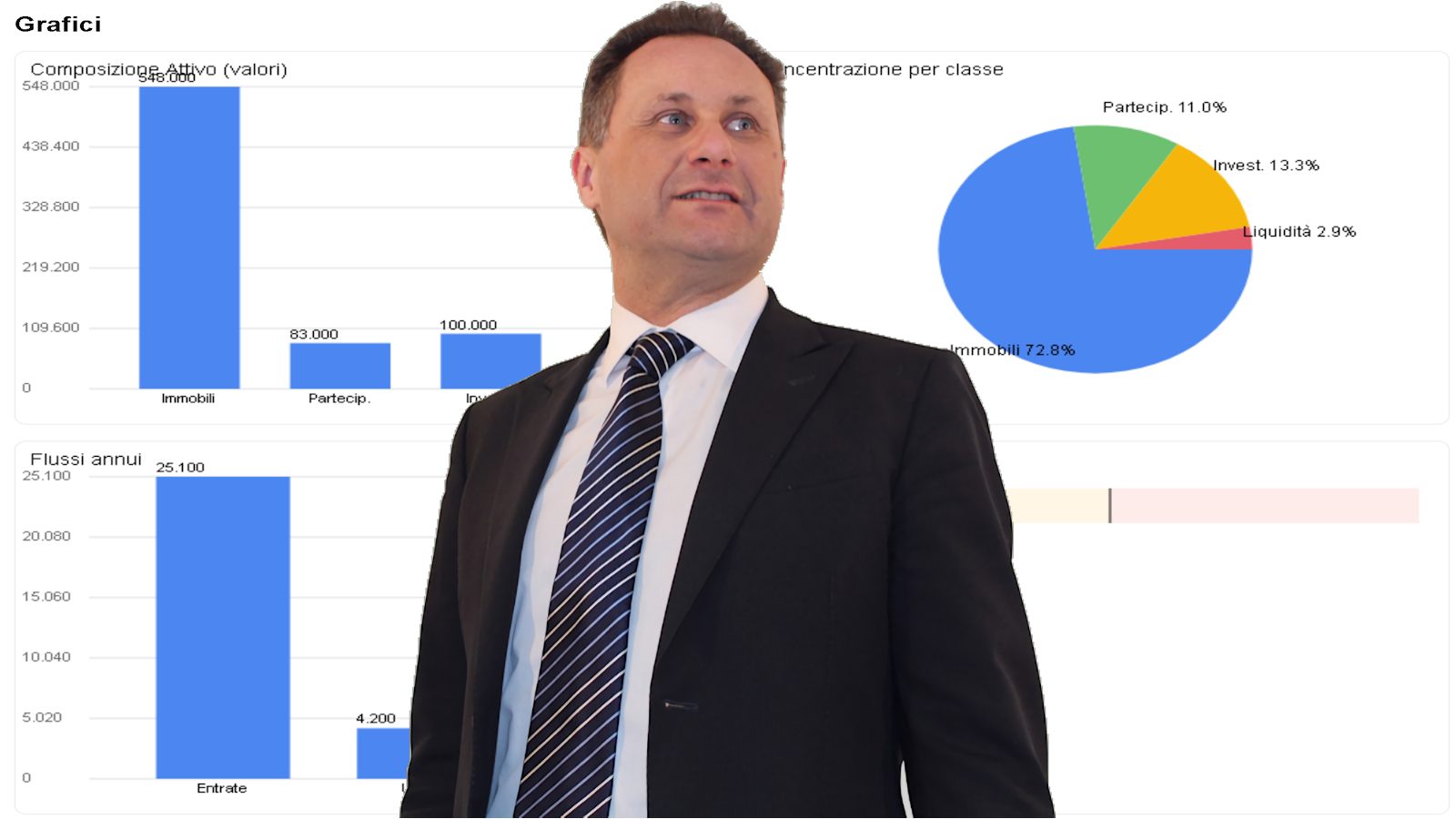 Gli imprenditori non sono solo titolari d’azienda: sono persone con patrimoni complessi, intrecciati a rischio d’impresa, esigenze familiari e obiettivi di vita. Limitarsi a “leggere i numeri del bilancio” dell’azienda lascia fuori metà della scacchiera: debiti personali, immobili, partecipazioni, investimenti finanziari, liquidità, flussi positivi e negativi che impattano decisioni operative e scelte di investimento.