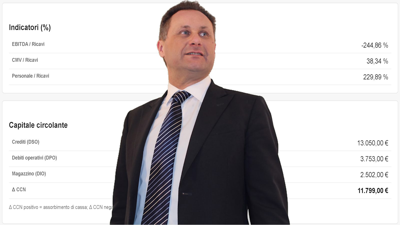 Il capitale circolante stava assorbendo oltre 150.000 €, generando tensione finanziaria nonostante un margine sano.
